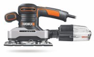 WX642.1 - Vibrační bruska  je dvouruční výkonná bruska pro plošné a rohové broušení plochých dřevěných materiálů, kovů, plastů, tmelů a laků. Při broušení si můžete upravit rychlost dle typu broušeného materiálu. Z důvodu delší životnosti má bruska pevnou kovovou základnu na kterou lze přichytit brusné papíry pomocí suchého zipu nebo svorkami. Čistý pracovní prostor zajišťuje integrovaný systém odsávání pilin do sběrného boxu. Horní strana rukojeti je pokryta gumou, která tlumí přenos vibrací při práci.